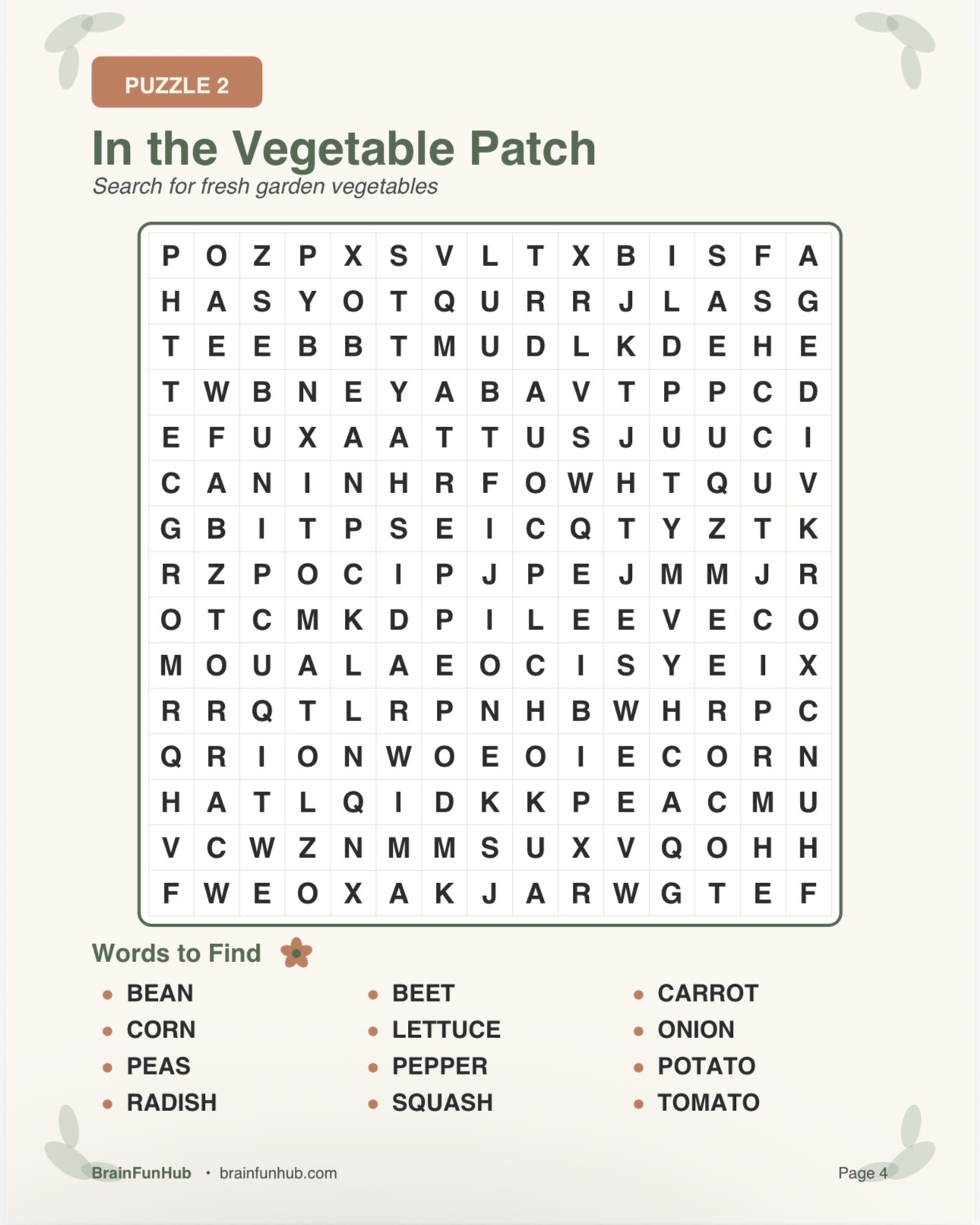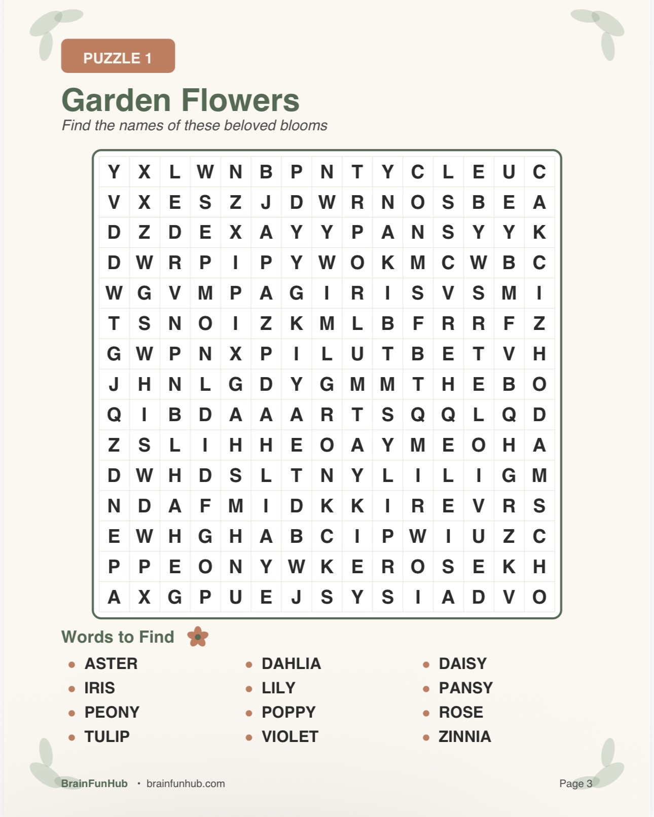 This large print word search pack was made for seniors who love a calm, satisfying puzzle. No tiny letters. No timer. No frustration. Just three delightful garden-themed puzzles you can print at home and enjoy at your own pace.